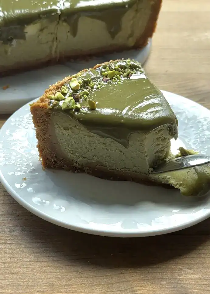So far, we’ve shared a no-bake pistachio cheesecake, a high-protein baked pistachio cheesecake, a no-bake vanilla bean pistachio cheesecake, no bake pistachio biscoff cheesecake, and now this baked pistachio cheesecake. Here’s what makes this one special:
