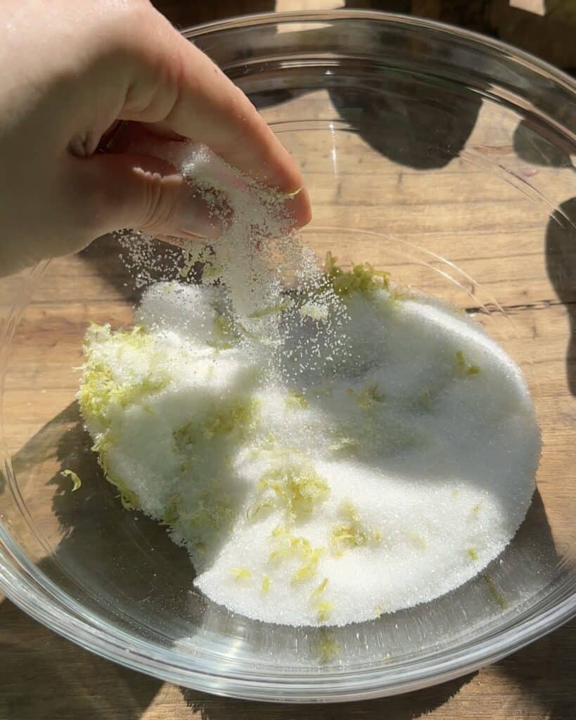 - Rub the lemon zest and the sugar together using your fingers, this will help the lemon realize its natural oils and affect the final flavor.
