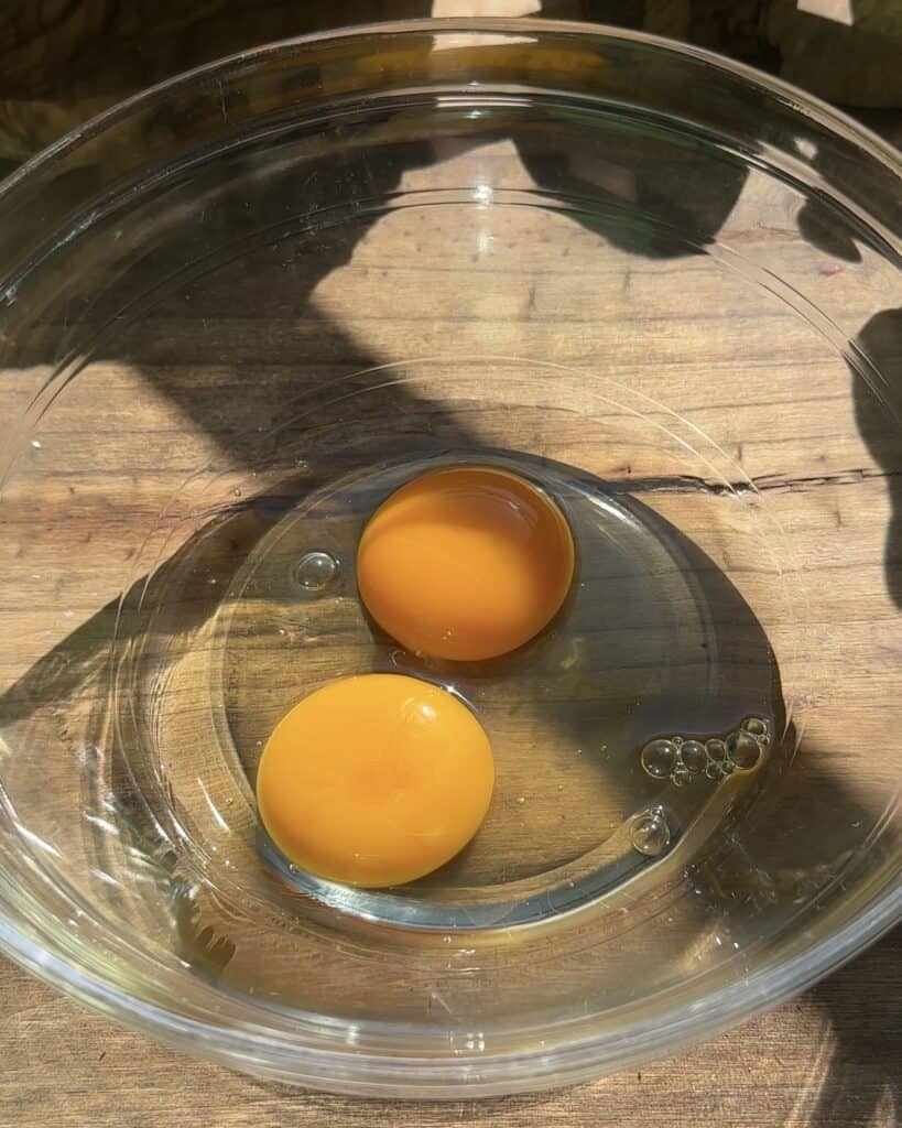 - 1 and 1/2 eggs (i used two very small egg for this, you can do that too if your chickens lay tiny eggs)
