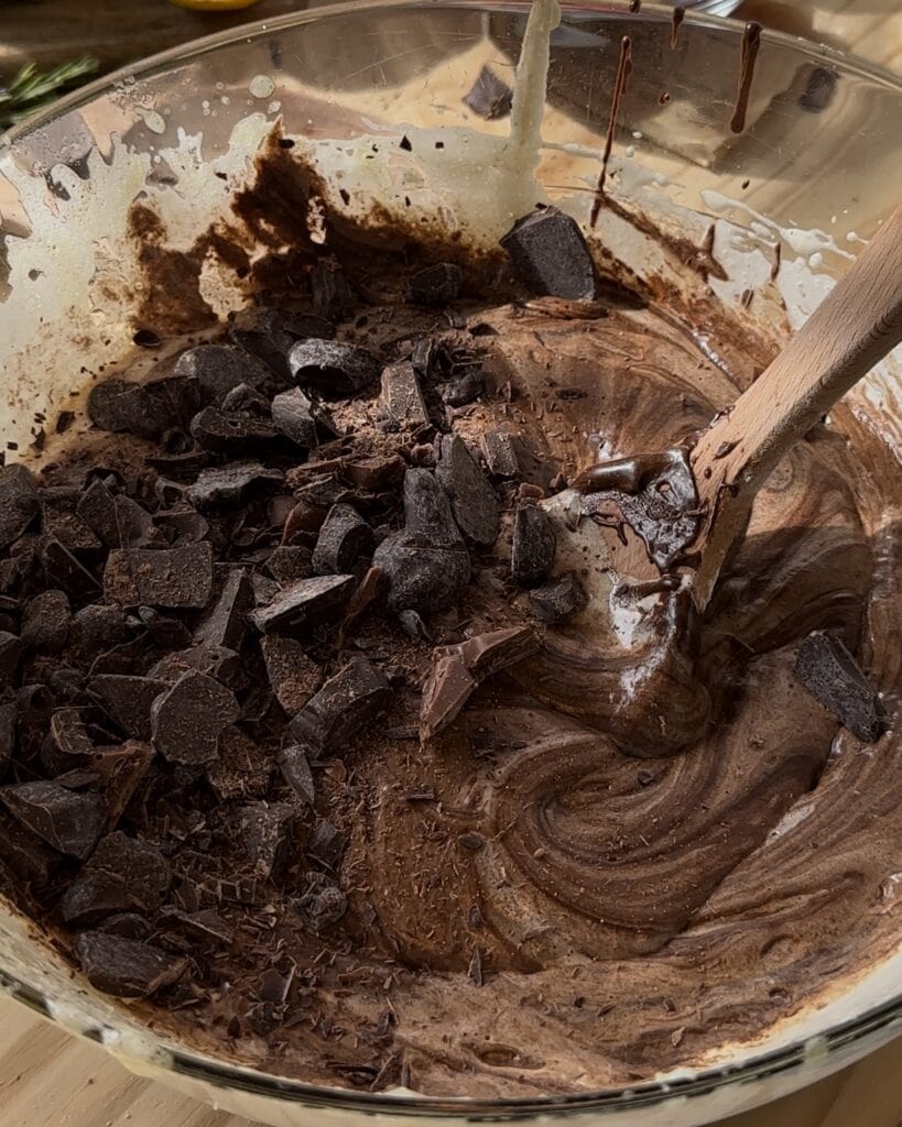 Once your butter is brown you can add the chocolate and mix until all of it its completely melted.