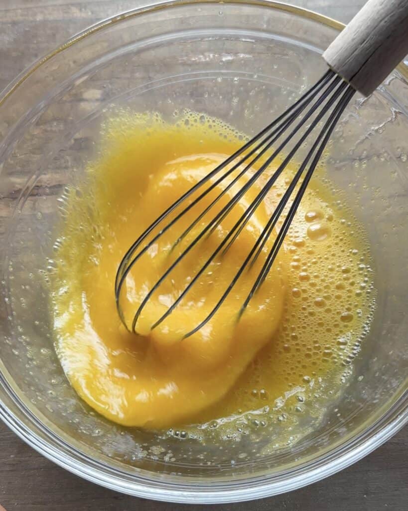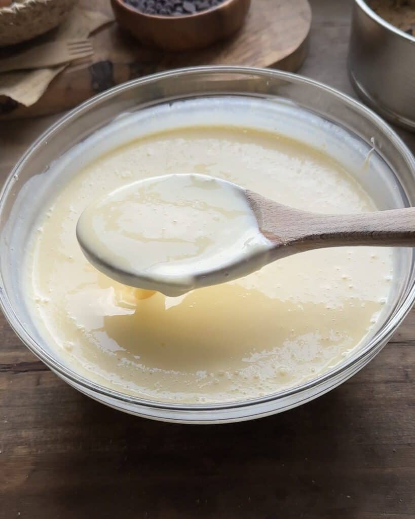 In a separate bowl combine the cornstarch, milk powder and heavy cream. Whisk this mixture vigorously until it reaches a smooth and creamy consistency ensuring that there are no remaining lumps of cornstarch in the batter.