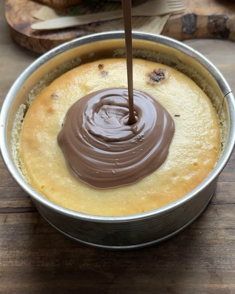 Once the cheesecake is cold and ready to decorate you can start preparing the ganache.