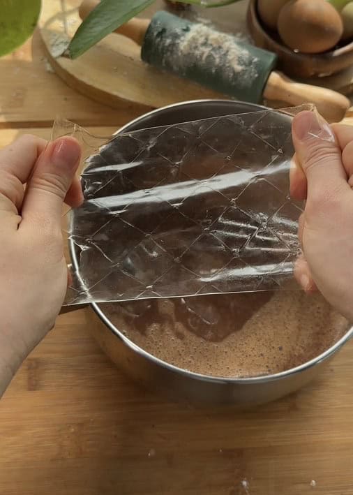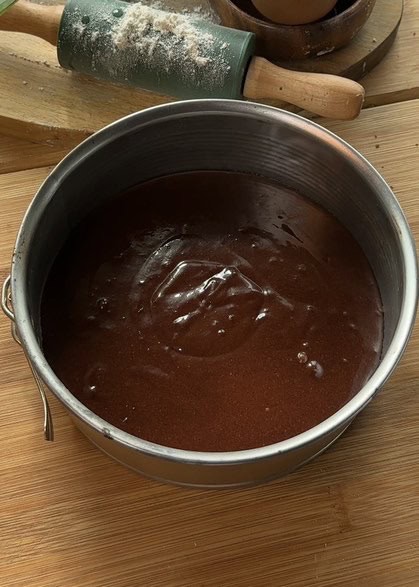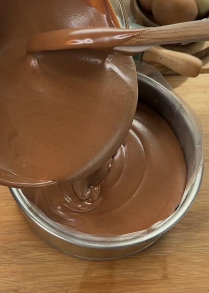 For the mousse cake base, we’re going to use our chocolate cake recipe—it’s super rich, decadent, and incredibly easy to make. We’ll simply scale it down to fit the pan size, so you won’t have any extra cake leftover.