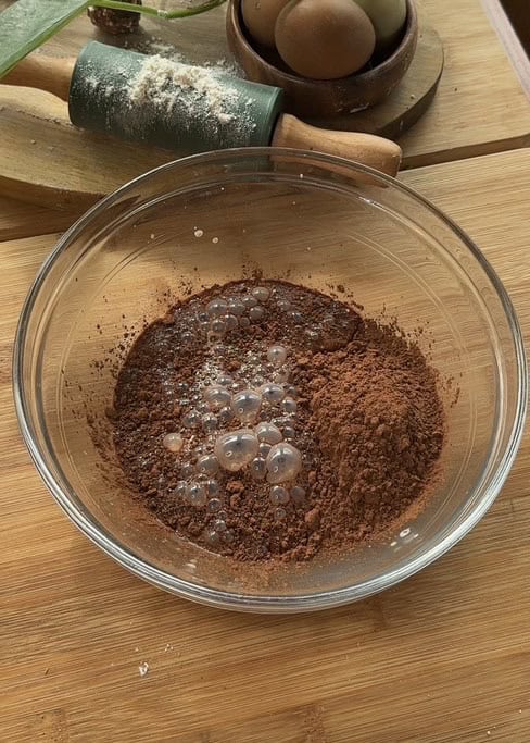 - In a mixing bowl, add the cocoa powder, then pour the hot milk on top and mix until it forms a smooth paste.