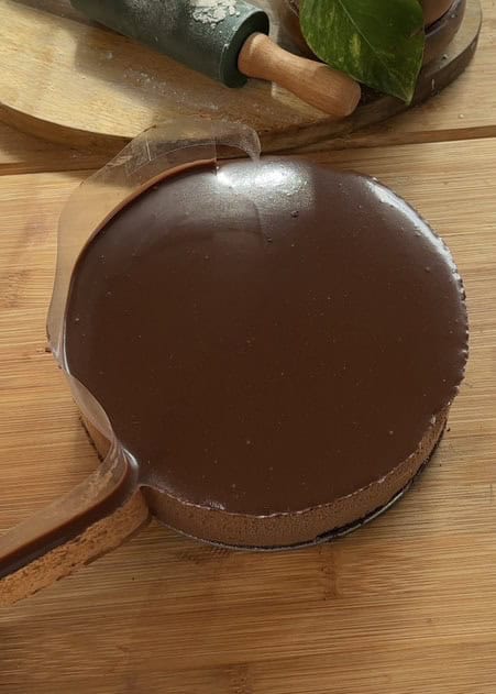 - Allow the ganache to cool slightly before pouring it over the mousse cake. If the ganache is too hot, it will melt the mousse layer.