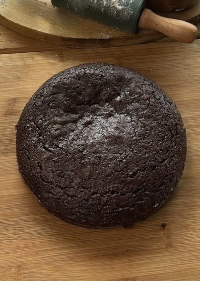 - Let the cake cool completely. Then, carefully cut off the top crust to create a soft, even cake base.