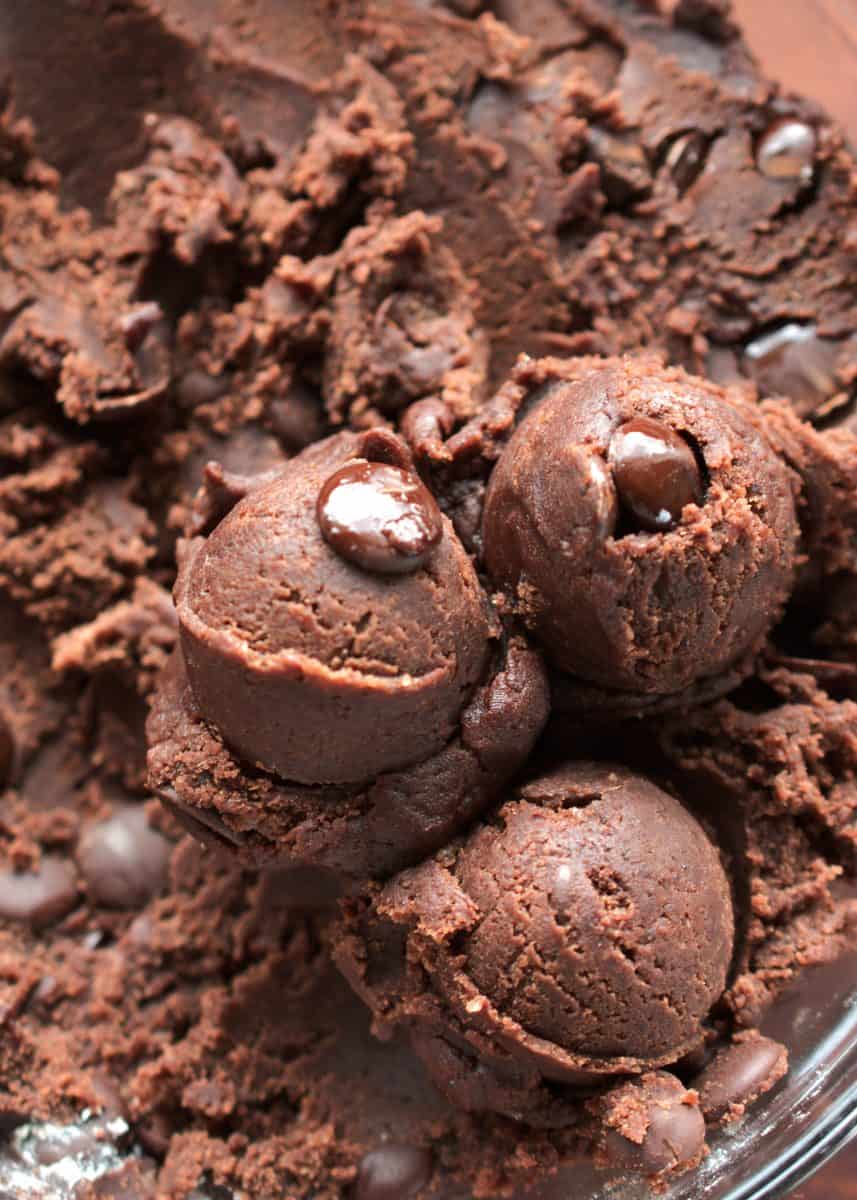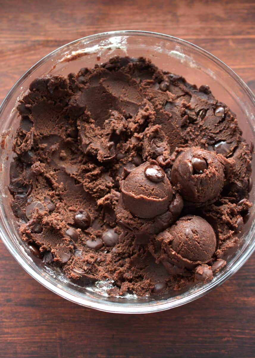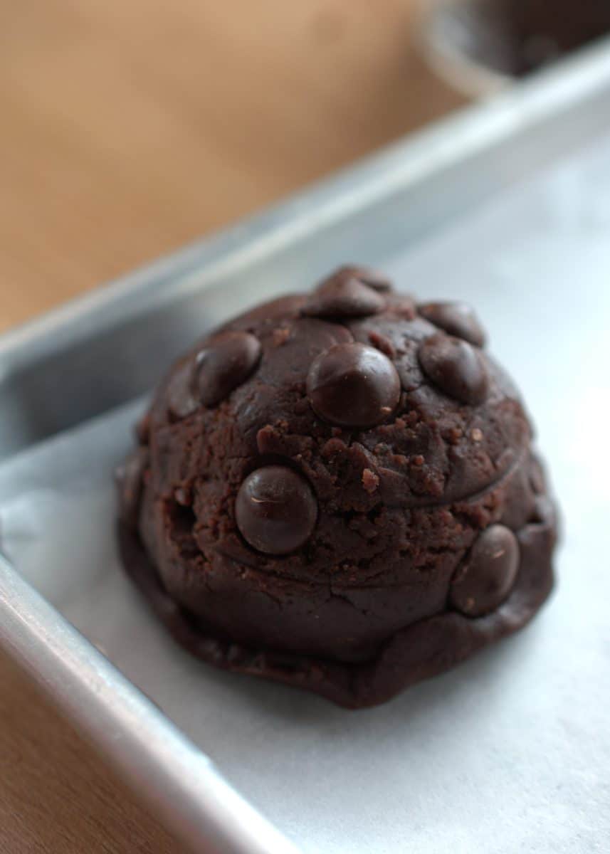 The dough has plenty of cacao and chocolate chips, which are two types of chocolate.
