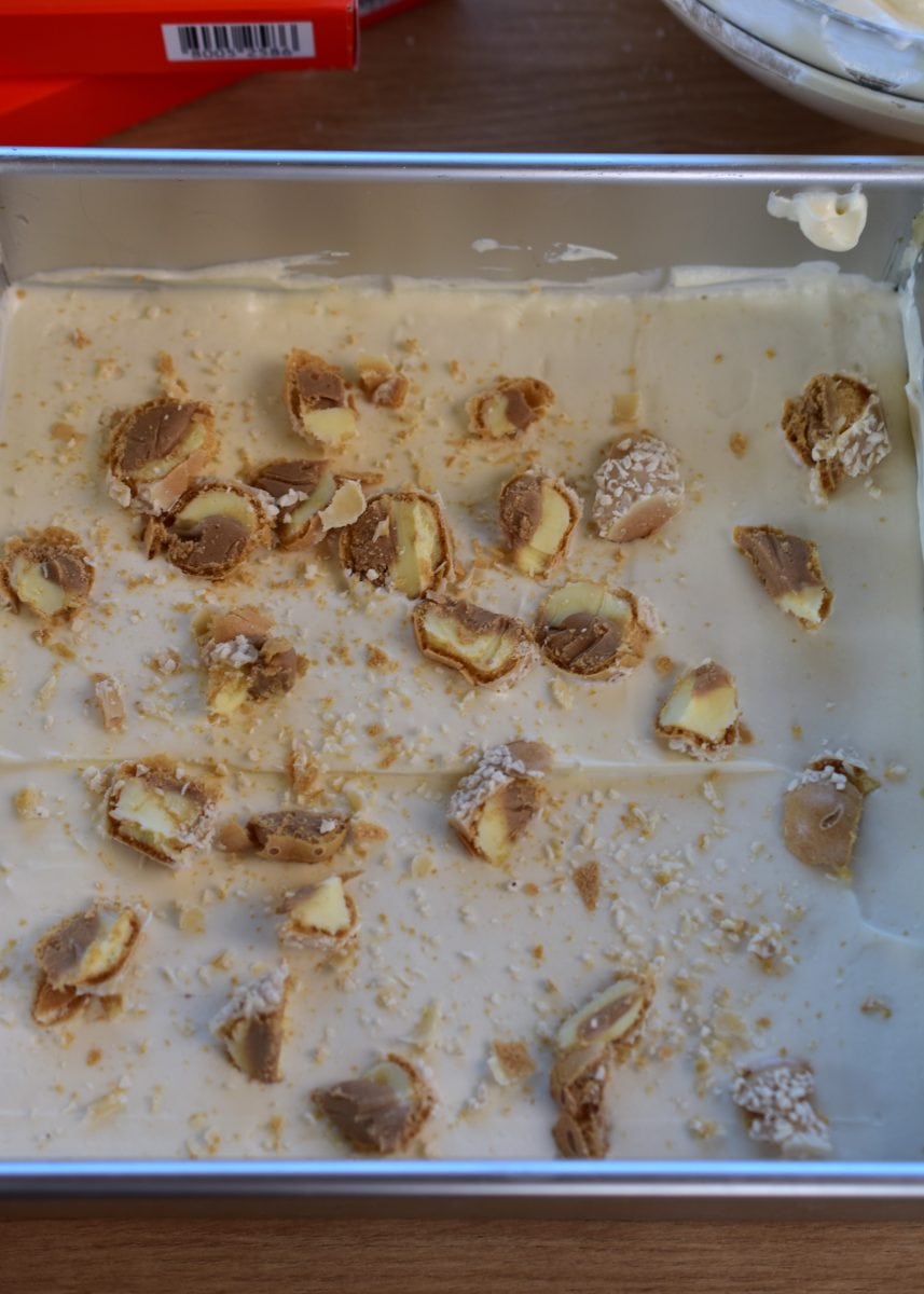 If you plan on freezing this dessert, don’t add the top decoration and save it for when you are going to eat it, so you can enjoy the crunchy topping.
