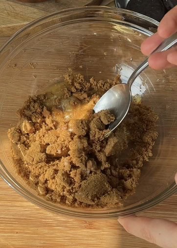 Step 2: Once crushed, add the melted butter and mix until the texture resembles wet sand.