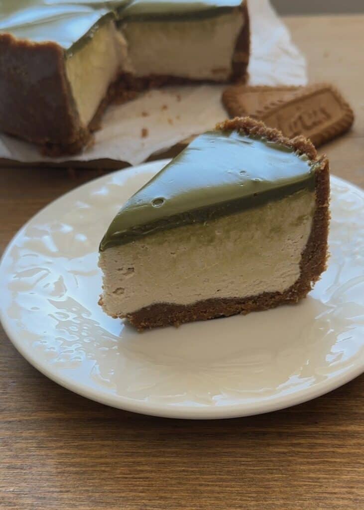 A dreamy no bake biscoff pistachio cheesecake with a crunchy biscoff cookie crust, creamy biscoff-infused filling, and a luscious pistachio cream topping. Perfectly smooth, irresistibly flavorful, and ready to impress with minimal effort.