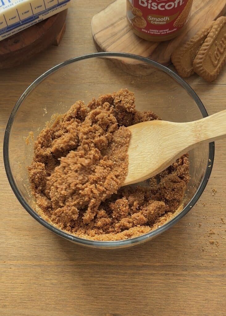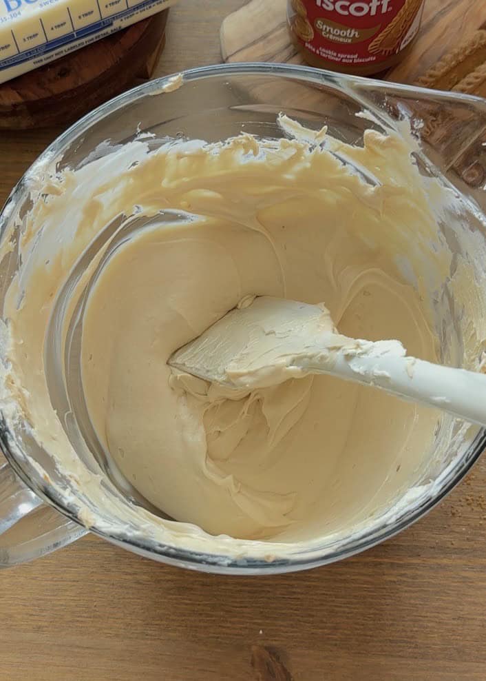 In a bowl, work the cream cheese with a spatula until it’s super smooth and creamy. Then add the biscoff spread and combine again until it’s perfectly blended.