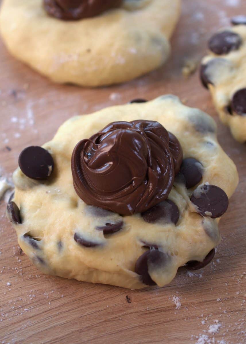 Delicious and buttery Nutella bombs, they have a tender crumb, a sweet Nutella filling, and so many chocolate chips.