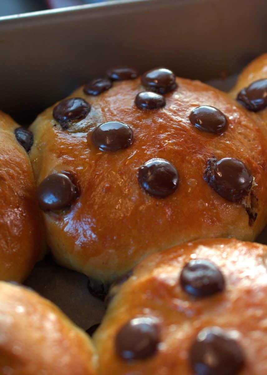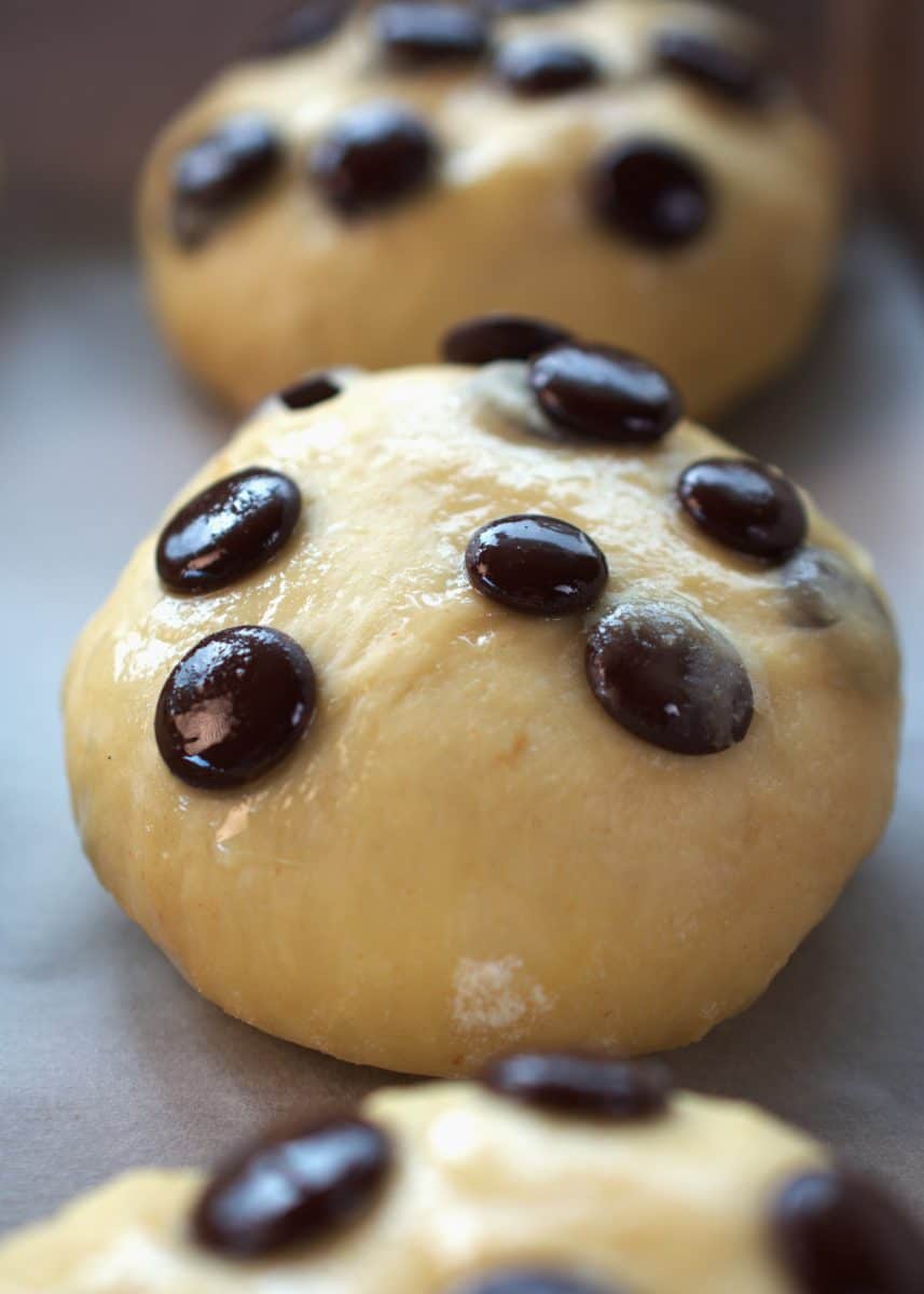 - It is possible that the chocolate chips melt on the top of the bun, so you can always add some extra ones on top to have a better finish.