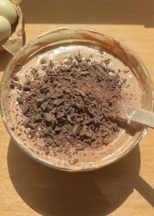 •  Finally, fold in the chopped cold chocolate pieces carefully to create the stracciatella texture. Make sure the chocolate is cold so it stays in small pieces rather than melting into the filling.