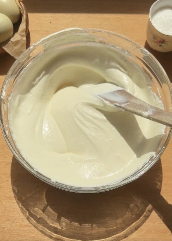 • Heavy whipping cream (35%+ fat): Whipped to soft peaks to create a light and fluffy texture.