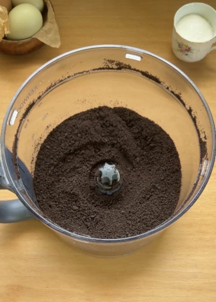 Crush your Oreos into fine crumbs using a food processor until they resemble sand. If you don’t have a food processor, place the cookies in a ziplock bag and use a rolling pin to crush them finely.