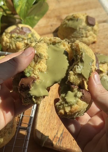 - Pistachio lovers, enjoy! Each cookie is loaded with salted pistachios and creamy pistachio spread—stuffed inside and added throughout. One bite reveals a gooey, nutty center that’ll make you swoon.