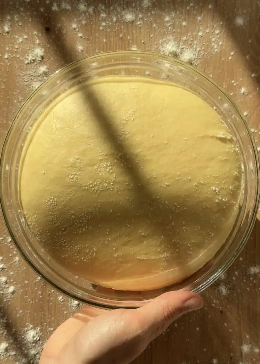- First proof: let the dough rise in a warm spot at about 29°C (84°F) until doubled in size, around 1 hour and 30 minutes.