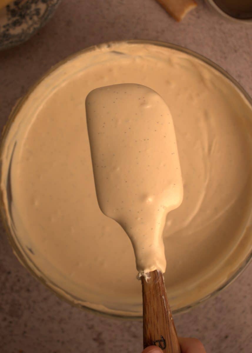 - A quick tip: don’t overmix! Mascarpone is quite delicate, and you only want to whip the cream until soft peaks form. If you whip too much, it can split, which we definitely want to avoid.